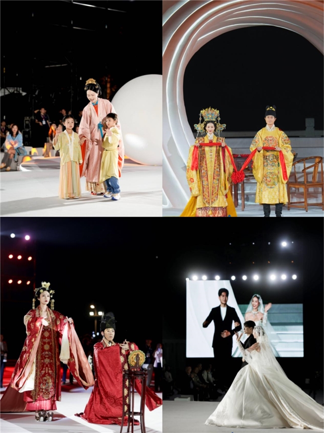 当晚,一场“传统礼赞·时尚婚典”的大型婚俗秀将开幕盛典推向高潮。演出依次呈现唐代婚俗秀、明代婚俗秀、新中式婚俗秀与西式婚俗秀四个篇章,并穿插系列主题舞蹈,生动展现不同时代与风格的婚俗文化演变。整场演出融合传统礼仪与现代风尚,为观众奉上一场贯穿东西、跨越千年的浪漫文化盛宴,赢得现场阵阵掌声。