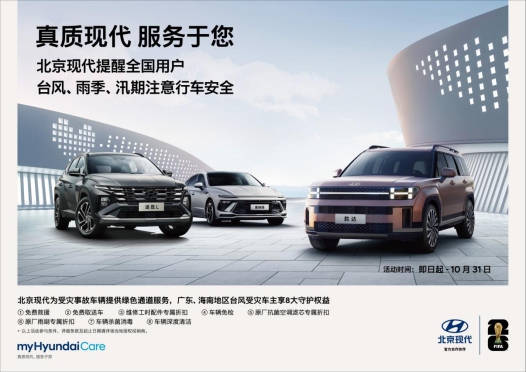 近日,受台风“麦德姆”影响,广东、海南等地区遭遇极端暴雨侵袭,当地人民群众的生命财产安全受到严重威胁。风雨当前,守护先行。北京现代第一时间响应气象预警,秉承“用户至上”的核心理念,迅速联动广东、海南两地经销商紧急展开行动,同步推出“真质现代 服务于您”专项关怀活动,以精准高效的服务举措,为受灾车主筑牢出行安全防线。 8大关怀权益,贴心护航用户出行 针对台风带来的极端天气影响,北京现代特别面向广东、海南地区因台风受灾的车主推出“真质现代 服务于您”专项关怀活动,并为受灾车辆开辟绿色服务通道,确保救援与维修全流程高效衔接。 广东、海南地区因台风受灾的北京现代车主可尊享8大守护权益:包括车辆受困后的免费救援服务、免费取送车、维修工时配件专属折扣、车辆免检、原厂抗菌空调滤芯专属折扣、原厂雨刷专属折扣、车辆杀菌消毒及深度清洁服务。从应急救援到日常养护,北京现代以全流程、全方位的贴心服务,切实减轻车主灾后用车负担,用真诚行动守护用户的每一次出行。